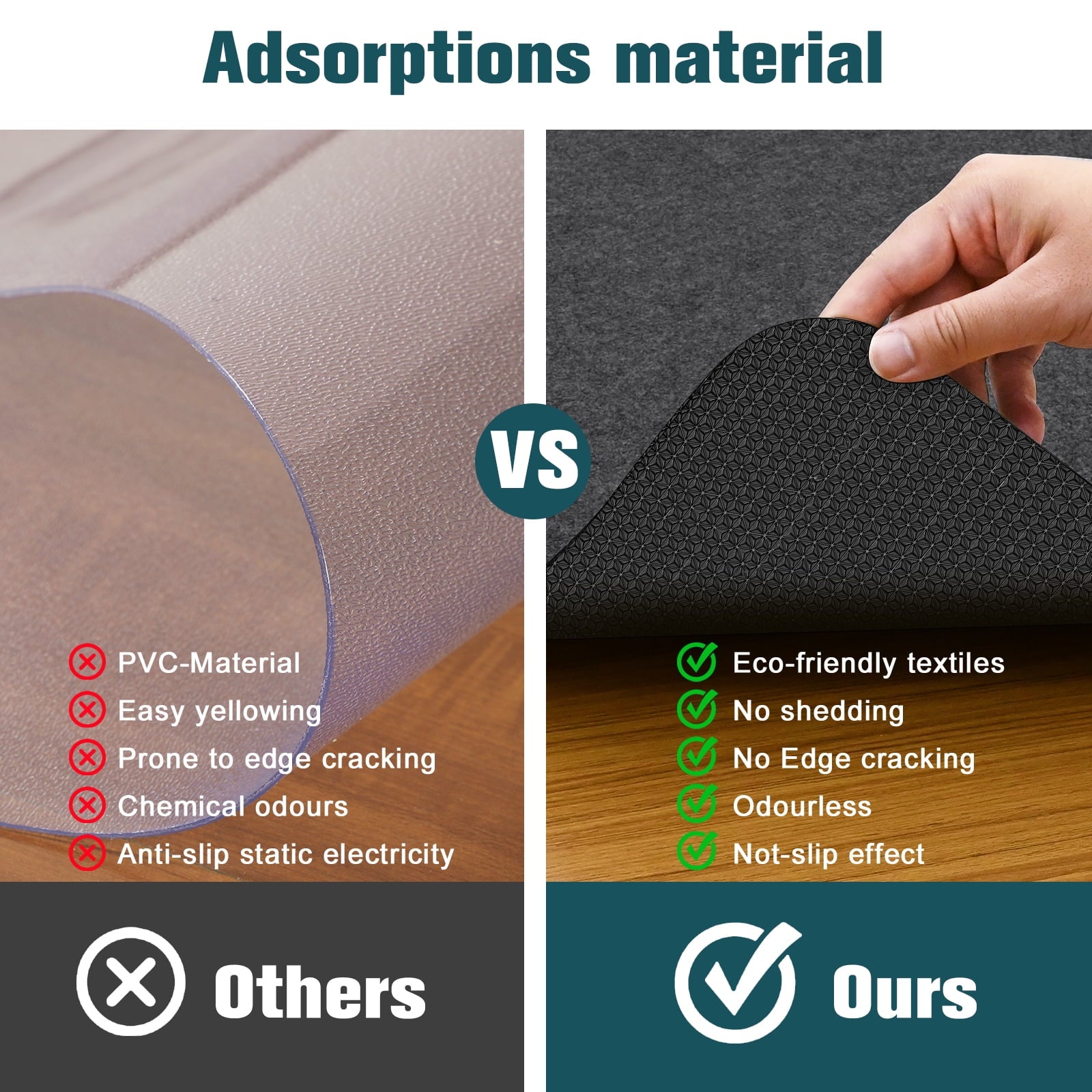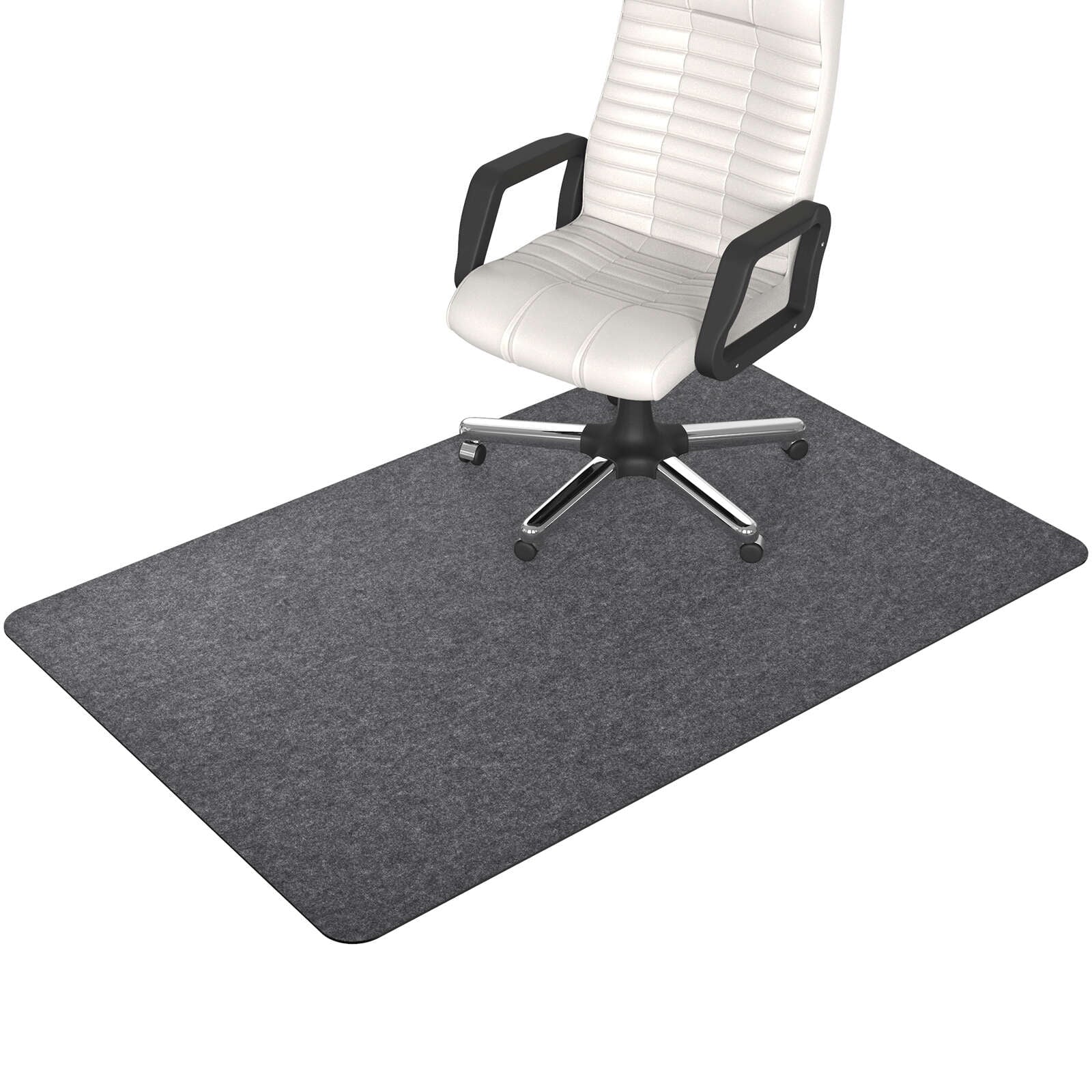 Jakmean thickened chair mat for hard floors such as hardwood, tile, laminate, linoleum (does not apply to any carpet or semi-carpet). 55 x 35 in office chair mat is quiet and noise-reducing. Made of non-woven fabric. Eco-friendly, colorfast, odorless, pet-friendly, non-toxic and will not dent and scratch or warp due to long-term use, while ensuring that the office chair wheels maintain controlled rolling and smooth sliding. Lay them straight out and use them without tearing the film, saving time. The rubber dot backing can better hold it in place. It can be vacuumed or wiped clean.