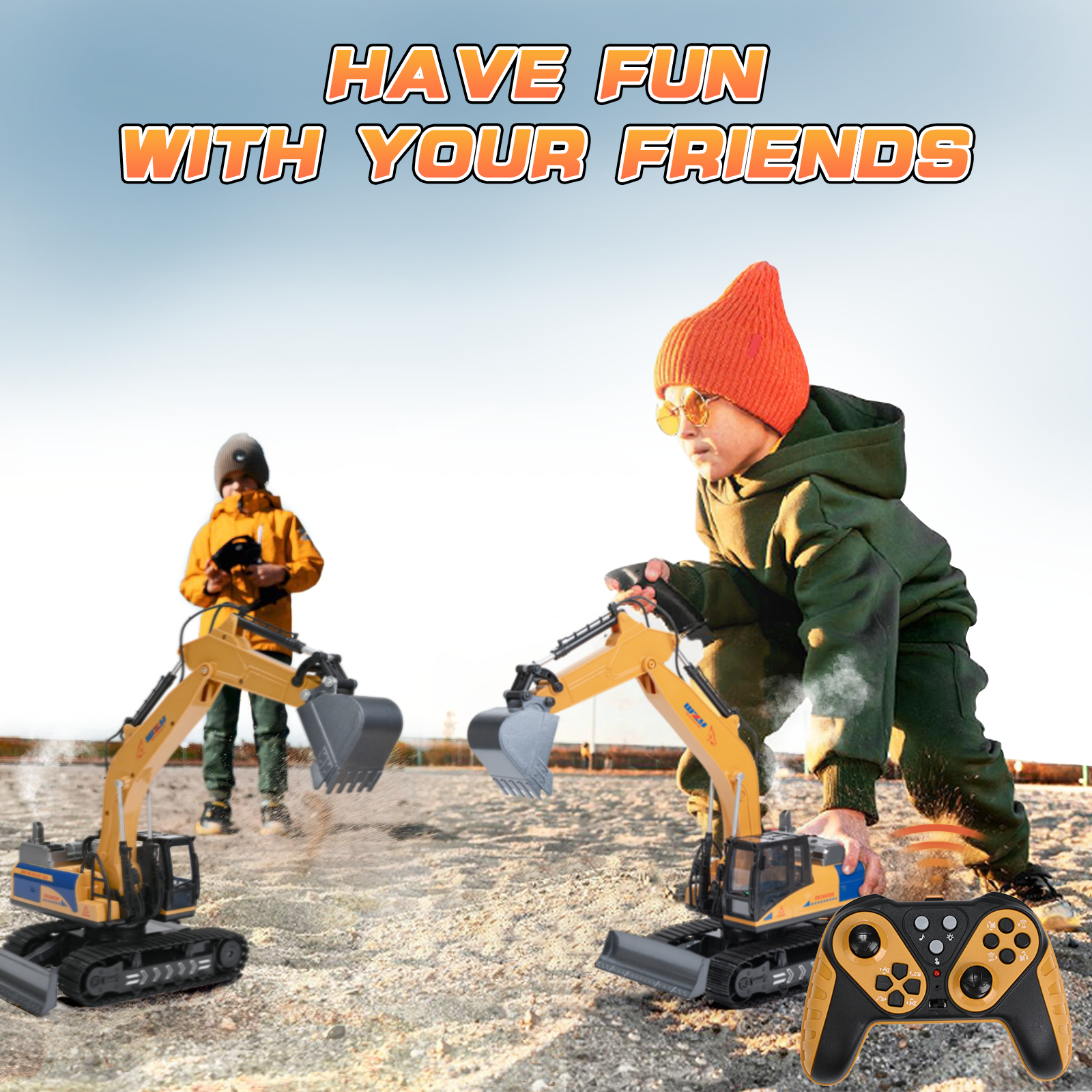 - 【100 Feet Control Distance】Remote control excavator is equipped with a powerful 2.4GHz transmitter that allows you to operate at a distance of about 100 feet with strong anti-jamming capabilities.