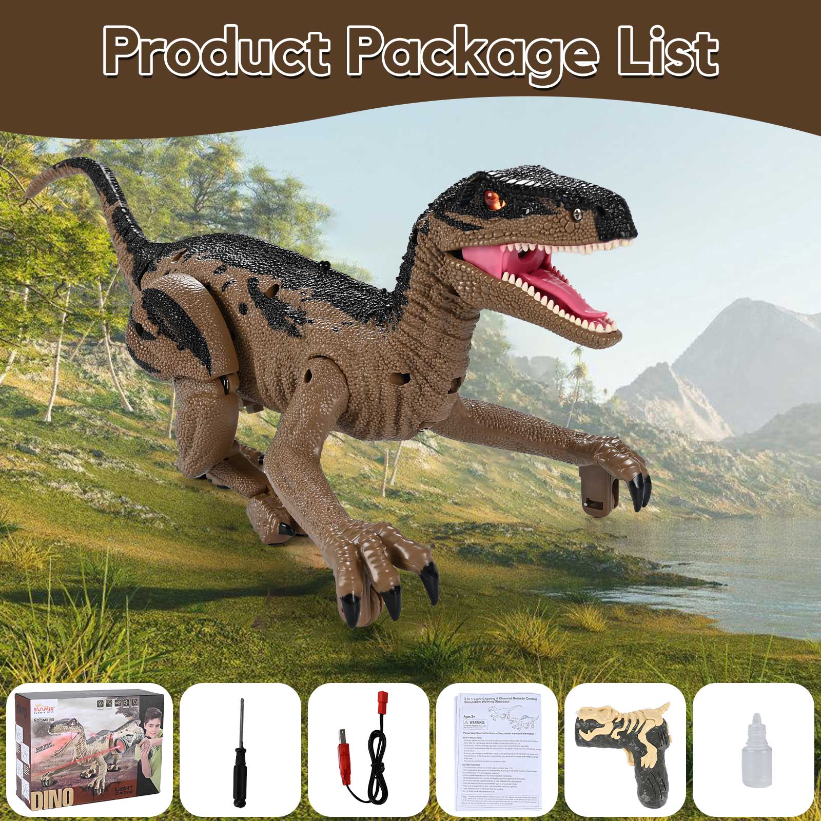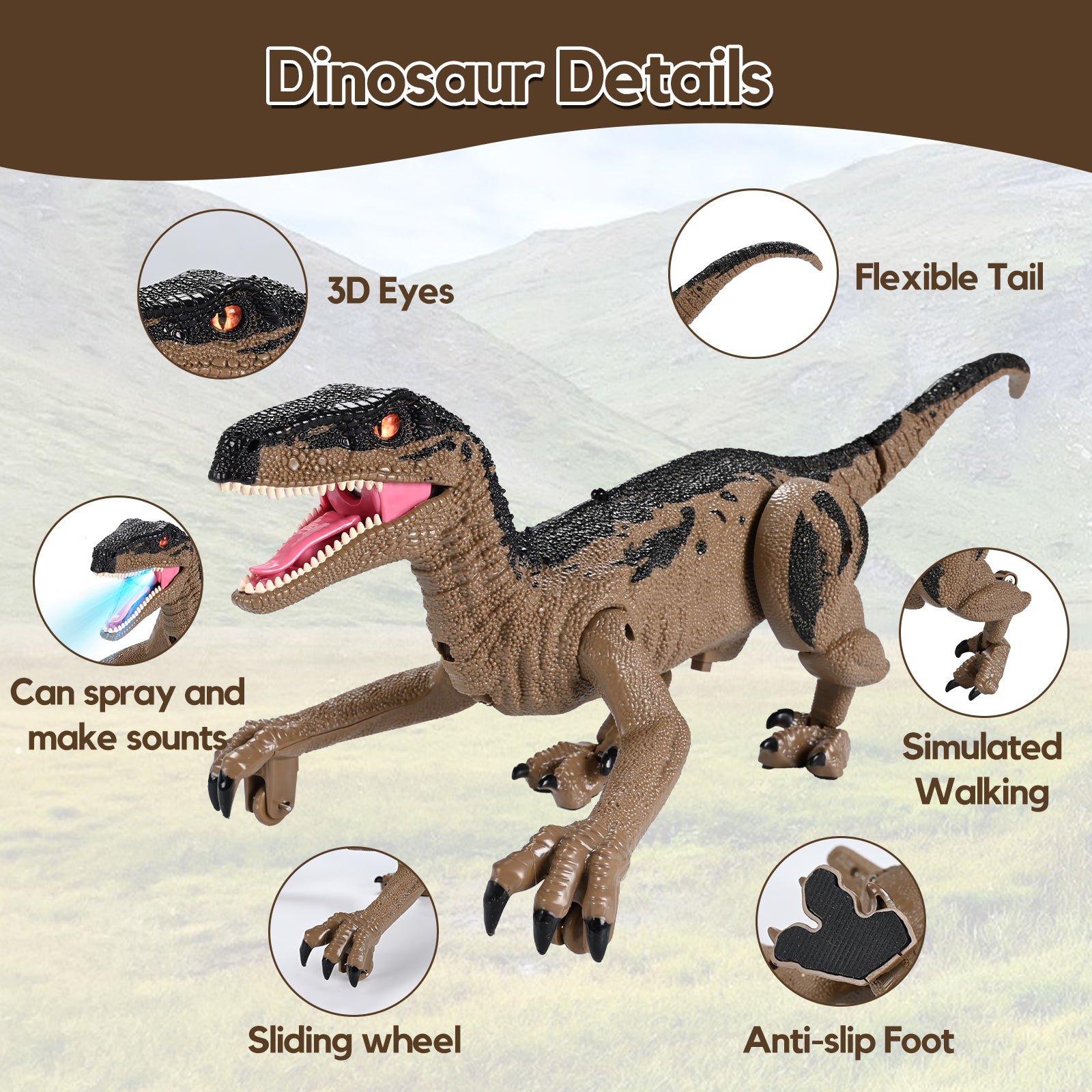 Remote Light Control Dinosaur Toys for Kids, Remote Control Dinosaur with Spray Sound, Walking & Roaring Simulation Velociraptor RC Dinosaur Toys for 3-12 Years Old Boys Girls